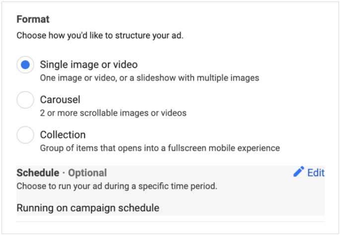 The typical schedule is set at the ad set level.