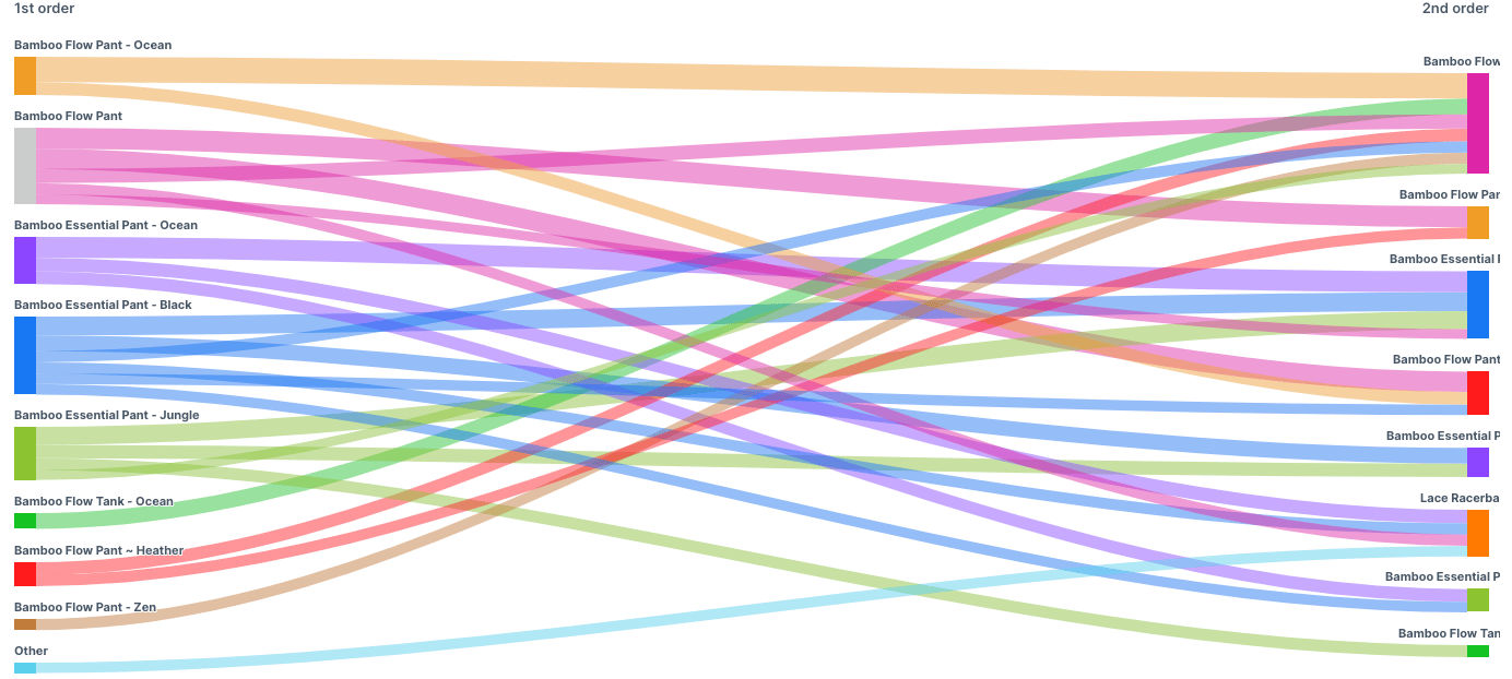 In the first chart I presented, only 3% of those who bought a pant came back to buy a tank top.
