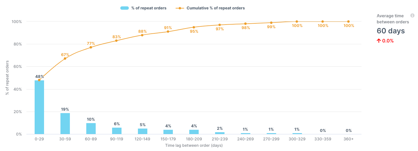 As you can see in the chart below, the avg. time between orders for this brand is 60 days.