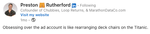Chubbies' founder (9-figure IPO) has recently posted this on LinkedIn: